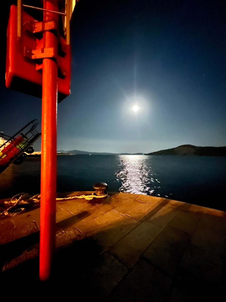 After the finest dinner we have experienced on this travel, we walked the harbour area. We were both a little surprised that there weren’t more lights around the harbour, but perhaps that’s a restriction under the park rules