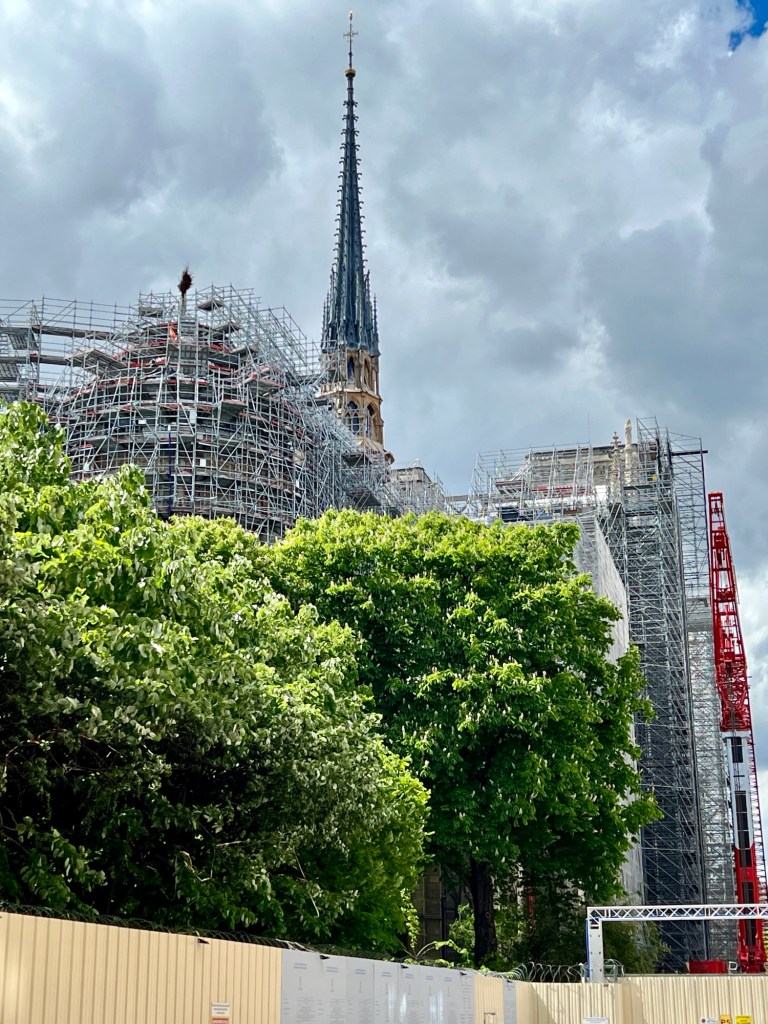 Arriving at CDG airport I found my way on the RER into central Paris with plans to get off and walk to Notre Dame. I’ve wanted to see the cathedral as restoration nears completion, and I couldn’t pass up this opportunity. Like so many people worldwide, I was caught up in the drama and horror when it caught fire. Damage of course was extensive. However, an army of specialists and many euros have helped put the cathedral back on the road to recovery.