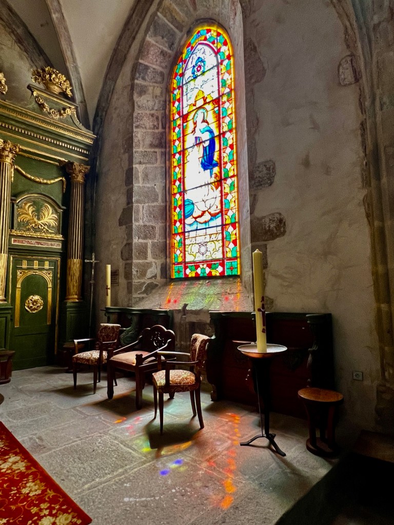 By chance, the small church was open, and I was surprised that the stained glass windows were as nice as they were. This isn’t always the case in small villages.