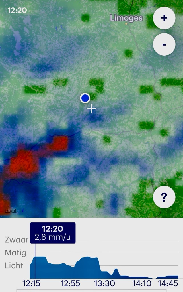 So, one more solid stage into Périgeuex and lots of rain forecast in the next 24 hours. A lot of it will fall tonight, but it’s going to be wet tomorrow as well. I was wondering today how many days of rain I’ve had on this walk? I’m gonna have to count those up and I’ll try to remember to post that information.