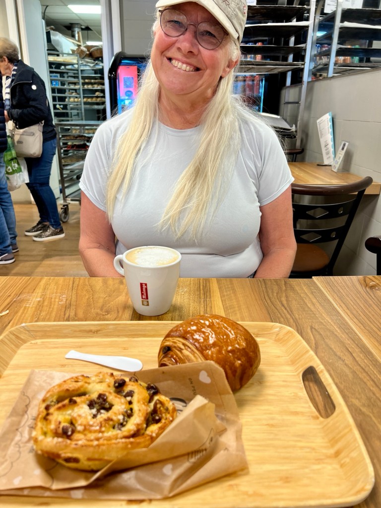 We found some! Annemarie seemed to be enjoying her coffee, and I was definitely enjoying my pan aux raisin!