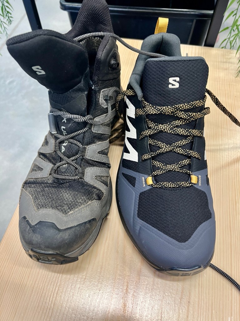 I stripped the laces and the inserts from the old boots because they were better quality.