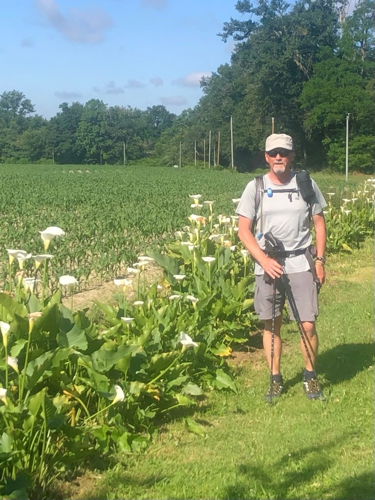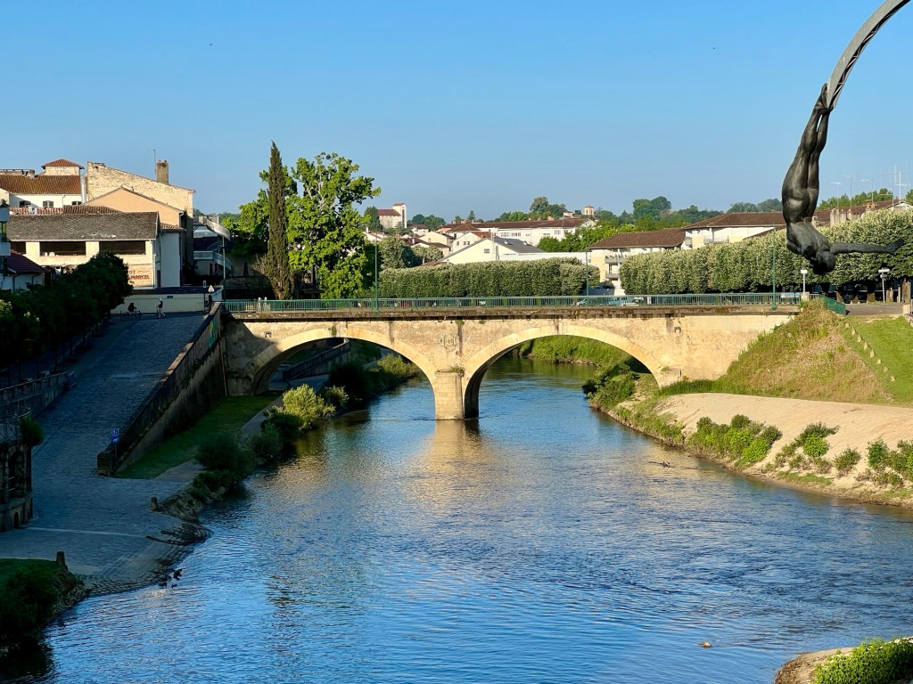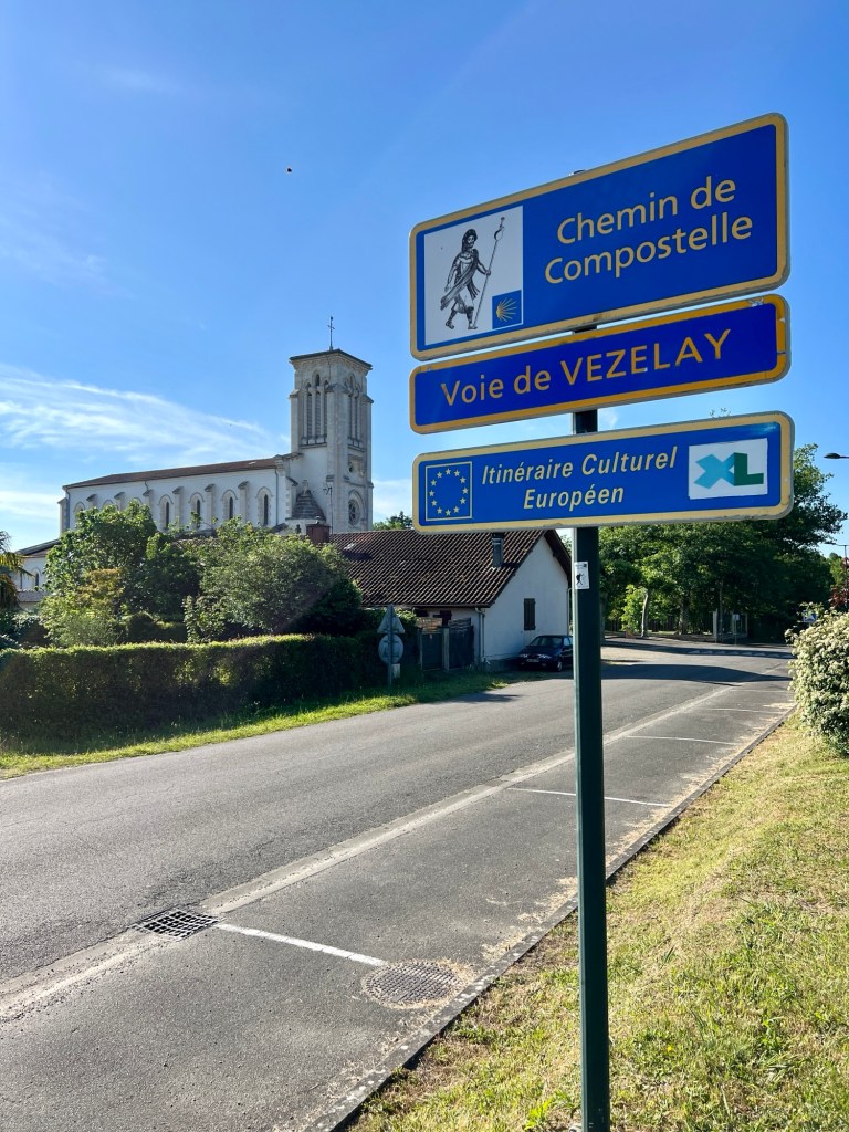As they were closing the store we stood outside dividing up the groceries. We still had to walk into Saint Sever. We rejoined the chemin and crossed the L’Adour River, a good sized river.