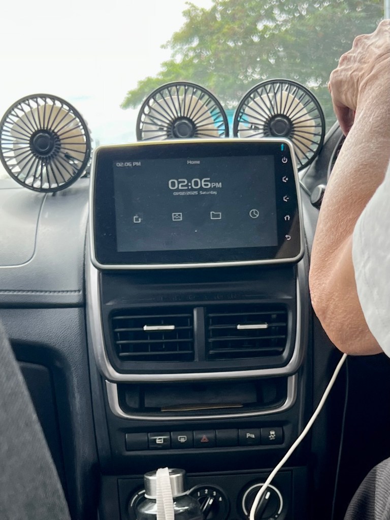 Arriving at the bus depot after about 5 hours, we called a Grab taxi and were soon on our way into central George Town, a World Heritage Site. Our driver in his small Proton car eventually arrived to ‘grab’ us🙄. He was driving a Malaysian car called a Proton. Pretty basic car as evidenced by the air conditioning system!!