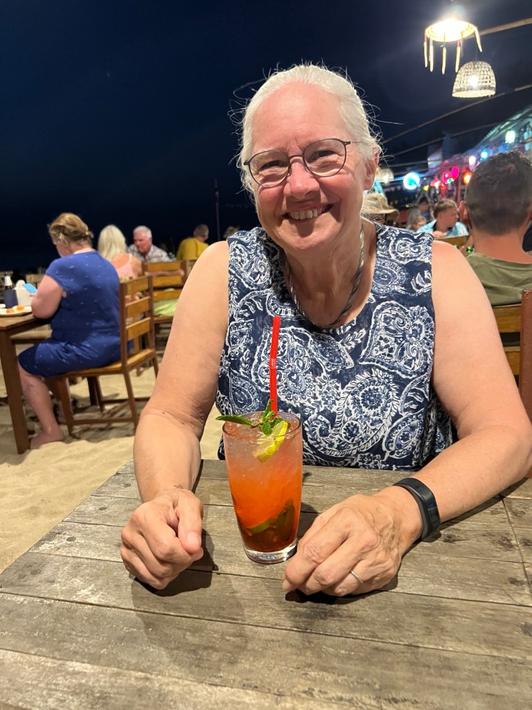 Dinner was very good and we sat outside at a table on the beach. It reminded us of a similar dinner we enjoyed with my sister Kathy in Greece some 7 years ago. That’s a special memory for both of us.❤️