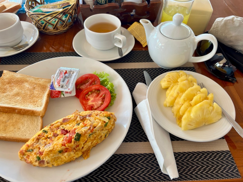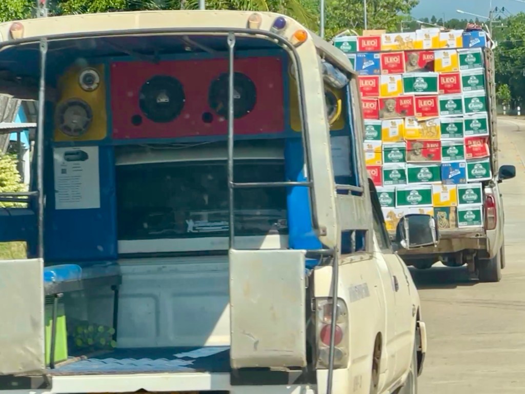 After settling our bill we were introduced to our taxi driver. As we walked out I wondered if we were going to be in the back of a pickup again, on the left. We weren’t and we ushered into the white Toyota van on the right. Phew!