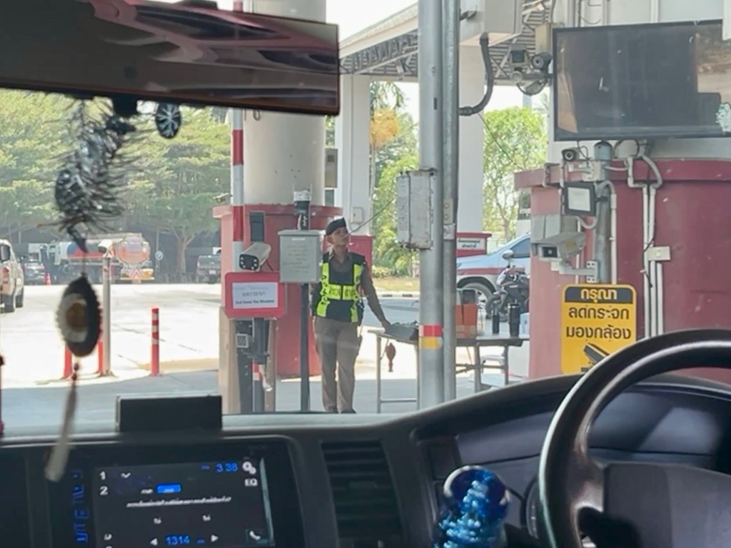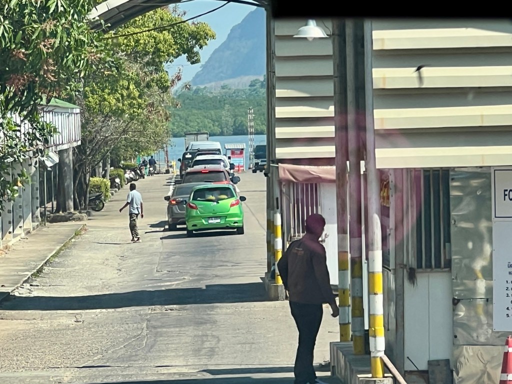 We eventually arrive at the security check point before entering greater Phuket. There was no check, but drivers are required to have their drivers window down. I guess there are cameras taking pictures and matching up images with a computer.