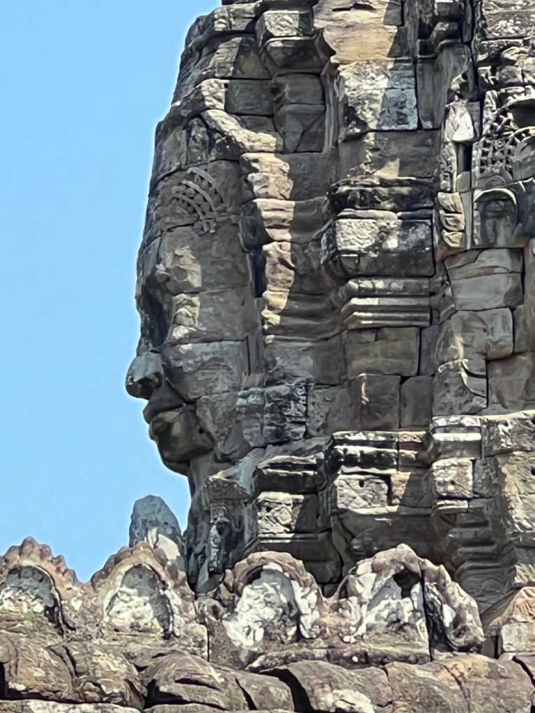 Billy set us up along the front fence and told us to stay at our spot until the sun showed up. It would be a long wait, but like everyone else we had come to see the sun rise over Angkor Wat. More and more people showed up, brought there by hundreds of tuk tuks, tour buses and cars. I would estimate that there might have been some 600 gathered. Billy told us that prior to Covid the numbers were much higher, over 60% higher. The Chinese, Japanese and Vietnamese have not returned in significant numbers. We’ve seen quite a few Korean tour groups, but as we noticed on the flight here, the tourist population is pretty ‘white’. Very different from our experience the past 4 weeks.