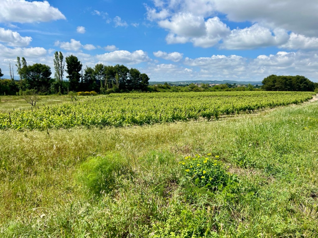 I finally get out of the city and it’s supporting suburbs and I begin to see the vineyards. I’m not very far from the Mediterranean and well south in France. I expect the vineyards to begin to disappear in the next few days as I get further away from the Mediterranean’s influence and into somewhat higher elevations.