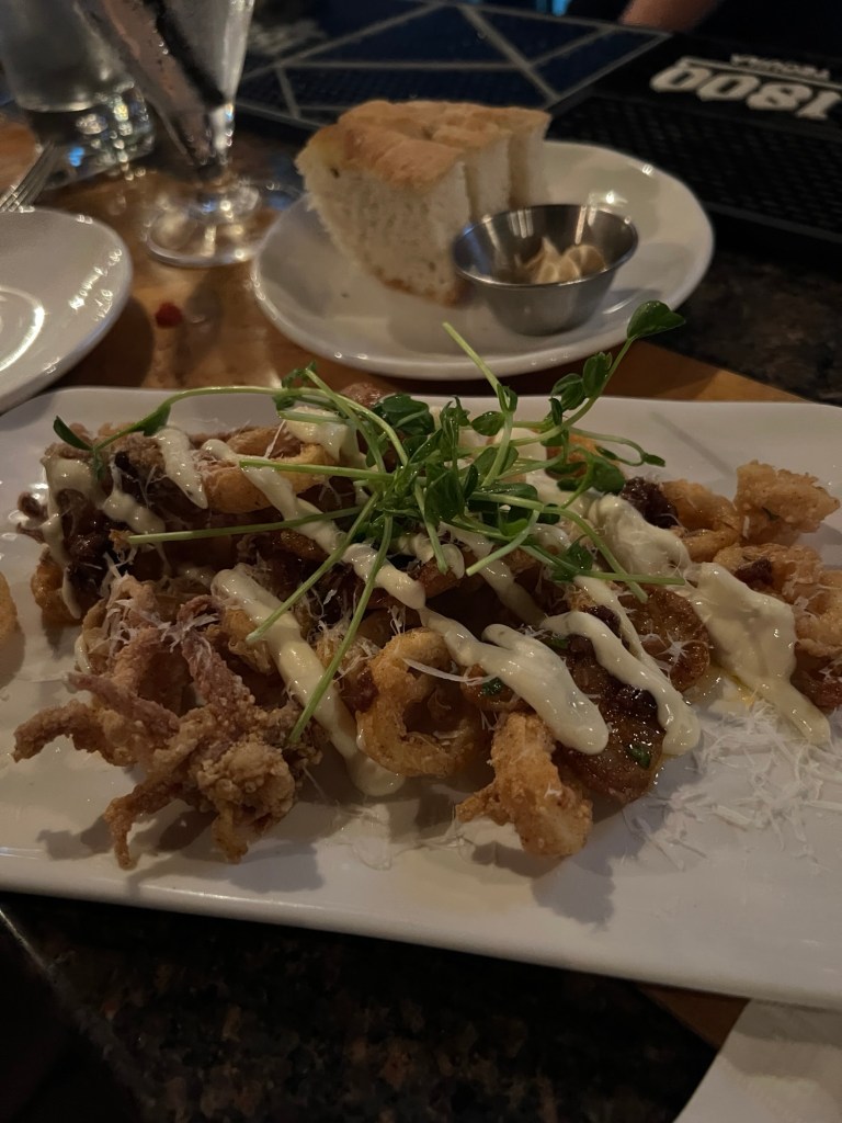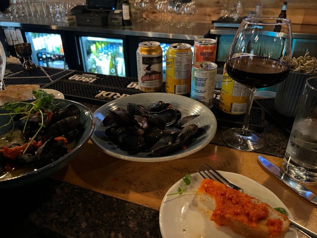We focussed on seafood appies with some of those local PEI mussels and some probably not so local Calamari with a nice twist of spice and a very good Argentinian Malbec.